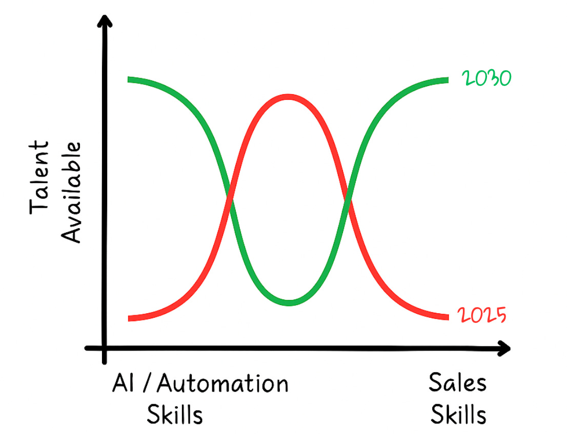We are heading toward a split in sales talent. On one side, we will see highly technical operators who master AI tooling, automate workflows, and build scalable systems for low-friction buying experiences. On the other side, we will see deeply experienced professionals who understand the emotional and strategic complexity of enterprise deals. They will know how to manage risk, navigate internal politics, and shape consensus across multiple stakeholders. Everyone else, the average rep, armed with AI but lacking judgment, will become obsolete.
